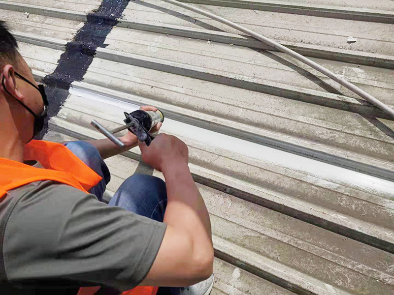 第二步:接著打完玻璃膠之后,在施工區域上邊的墻壁表面進行開槽,并且裝上擋雨板之后,再用抗紫外線防水膠均勻的刷2層,這樣可以確保黏貼牢固和經久耐用。